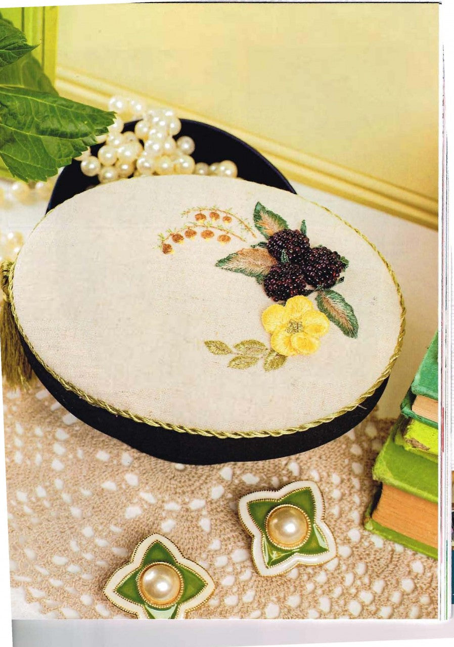 Designed and stitched by Dawn Elsbury for Rajmahal, this charming little box would make a delightful gift for a special friend. Purchase Rajmahal Product for this project by following links. Rajmahal Art Silks x 1 Skein 94- Moroccan Gold 171-Woodlands 311-Fresco Oil 521-Maidenhair 805-Sassafras 841-Gilded Bronze 926-Verdigris Rajmahal Art Silk x 2 Skeins 421-Green Earth