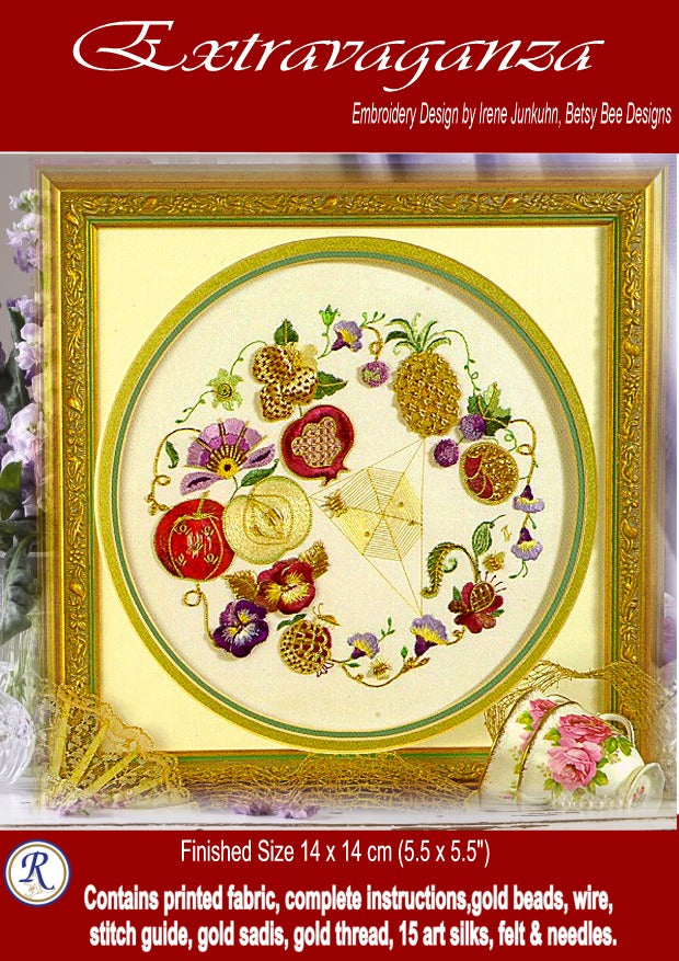 Size: 22 x 24 cm Contains Printed Fabric, Sadi Threads, 15 skeins Art Silk, Metal Thread, Rajcord, Beads, Felt, Wire, Needle, Complete Instructions and Stitch Guide. To learn more about how to Use Art Silk & how to Use Sadi Threads please follow links