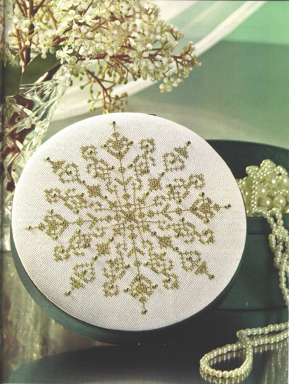 Heather Lownds used shimmering metallic thread and gold pearl beads to give this satin covered box a sparkling finish. It would make a great container to store precious Christmas decorations when the season is over. To purchase Rajmahal Product used in this project please follow the link. Large Round Box