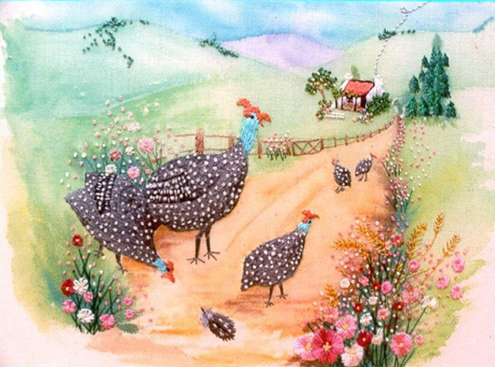 Design Size: 20cm x 22cm Contains hand-painted Seedcloth fabric, 18 skeins art silk, Complete Instructions, Stitch Guide, Needles Embroidery Design by Irene Junkuhn, Betsy Bee Designs