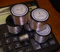 Metal threads are a brilliant addition to many forms of needlework. As well as their traditional role in goldwork, metal threads can add a unique and special look and texture to so many needlework styles. Include a dimensional needle lace gold fish, highlight cross stitch, create rays of sun or moonlight, give butterfly wings a glisten, create realistic rich costumes, add beauty to stumpwork, embellish heraldic symbols and ecclesiastical robes, emboss a book cover, ornament clothing to add a touch of haute couture, enrich and enliven all sorts of stitching and passimentaries.Traditionally metal threads are laid or couched, but they can be used in any stitched, including cross stitch and smocking. They can even be knitted or crotcheted! Rajmahal Handsew Metal thread has a copper core with Copper Metallic Coating with a copper metallic coating. Reels are of 300+ metres. Traditionally laid or couched, this thread can also be taken through fabric, provided an appropriate needle is used, i.e. a needle that makes a slightly larger hole than the thread so as to prevent stripping. Apporx;250 meters per reel