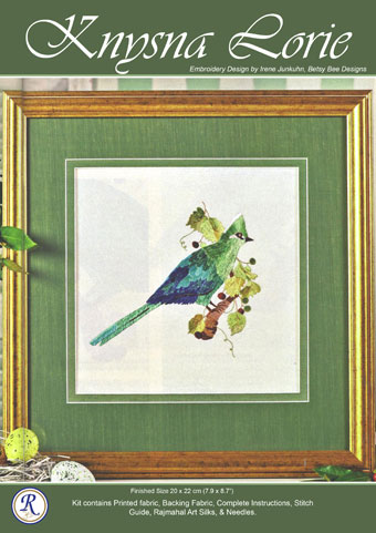 Design Size: 24cm x 24cm Contains hand-painted seedcloth Fabric, Complete Instructions, Stitch Guide, 18 shades Art Silk, Sadi, Metal Thread & Needles Embroidery Design by Irene Junkuhn