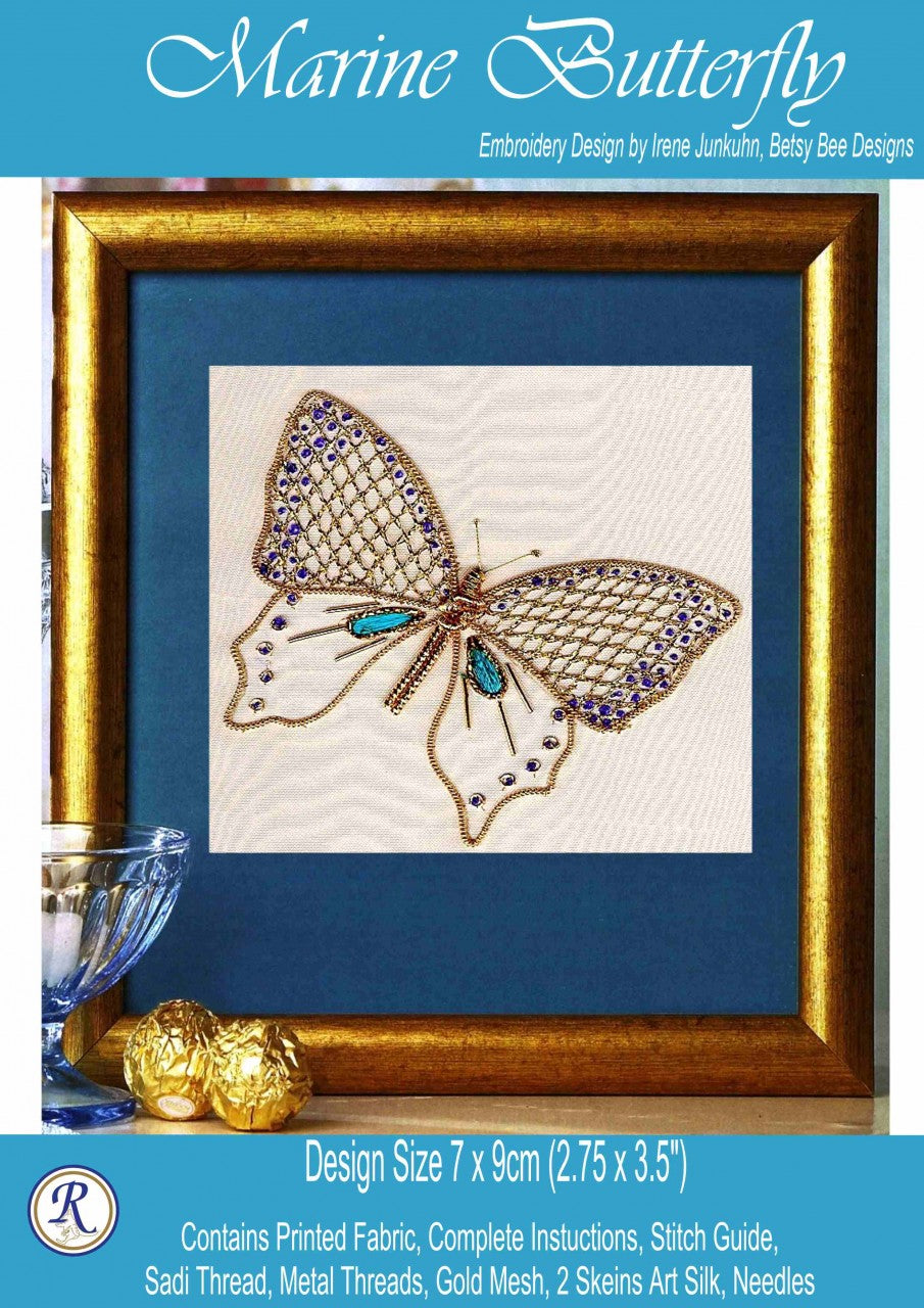 Size: 7 x 9 cm Contains printed fabric, 2 skeins Art Silk, Gold Sadi, Metal Thread, Gold Mesh, Rajcord, Beads, Needles, Complete Instructions, Stitch Guide. Perfect Kit for the Beginner.