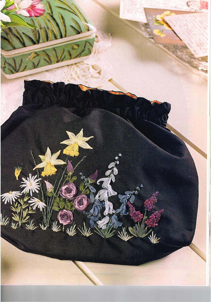This delightful purse by Helen Dafter features many of the main stitches used in Silk ribbon embroidery, it is great way for someone wanting to try this craft for the first time to get a feel for this style of embroidery.
