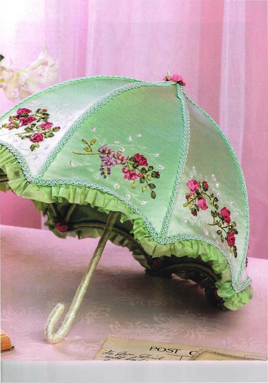 This beautifully embroidered Parasol by Ana Mallah uses our Rajmahal Art Silk Thread in White 96 which is a lovely enhancement to this very pretty parasol.