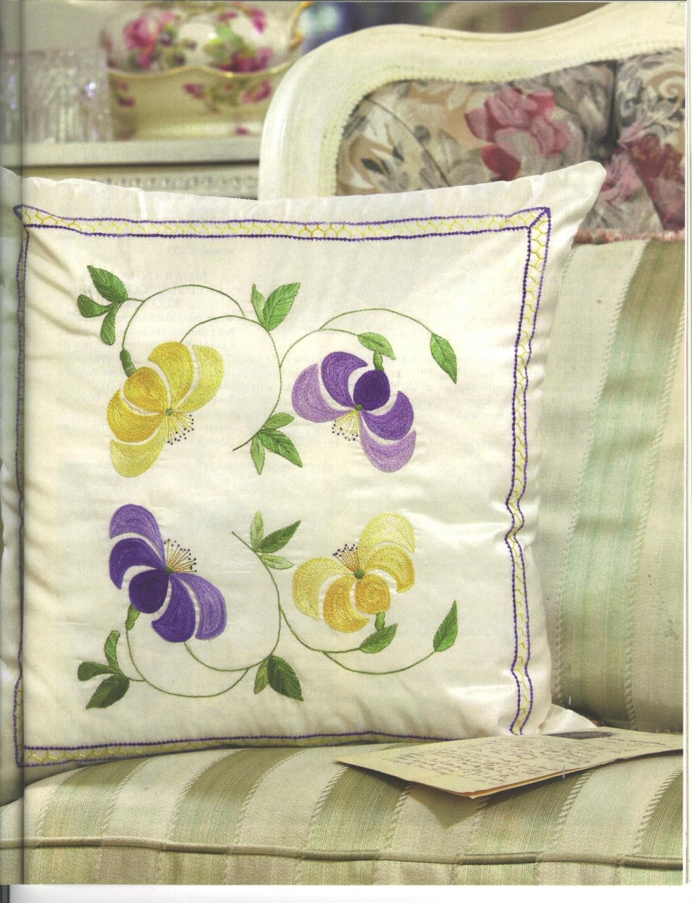 Gladys Clough,Queen of Cushions. Her expert stitching and great colour sense is always evident in her gorgeous designs. To purchase Rajmahal product used in this design please follow the link. Rajmahal Art Silk 1 skein of 521