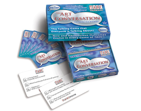 TAOC Game - The Art of ConversationThe Talking Game that Everyone is Talking About!A game by Louise Howland and Keith Lamb. Designed to revive the Art of Conversation , TAOC is a fabulous way to make all get-togethers memorable. TAOC can even help revive relationships!