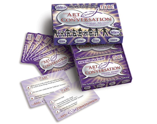 TAOC Game - The Art of Conversation - Christian EditionThe Talking Game that Everyone is Talking About!A game by Louise Howland and Keith Lamb. Designed to revive the Art of Christian Conversation, TAOC is a fabulous way to make all get-togethers memorable. TAOC can even help revive relationships!A unique, multi-purpose resource ideal for use in numerous settings including the home, small groups and education. TAOC provides ideal ways to deepen understanding, enrich and enjoy relationships and get to know God, yourself and others better. Explore faith and life from new perspectives!