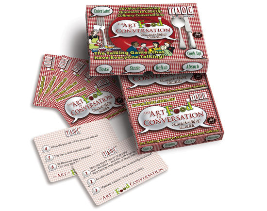 TAOC Game - The Art of Conversation - Food EditionThe Talking Game that Everyone is Talking About!A game by Louise Howland and Keith Lamb. Designed to revive the Art of Conversation, TAOC is a fabulous way to make all get-togethers memorable. TAOC can stimulate conversation about all your favourite foods. Food For all who enjoy food, TAOC cooks up a multititude of culinary adventures! Relish the love of food, sharing great times, discoveries and ideas with friends old and new. From comfort food to cutting edge, talk destinations, eateries, tastes and chefs. Share ingredients, trends, education, ethics and much more.