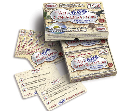 TAOC - Travel EditionThe Talking Game that Everyone is Talking About!A game by Louise Howland and Keith Lamb. TAOC - The Art of Travel Conversation is ideal for experienced travellers, soon-to-be-travellers, even armchair travellers. It encourages conversation about the world, people and places, experiences, sights and sounds, philosophies and beliefs. But it also allows you to swap 100% practical travel tips. Includes over 300 questions, guidebook and endnotes.