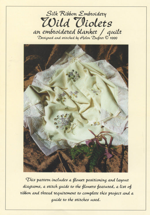 This pattern includes flower positioning and layout diagram, a stitching guide to create the featured flowers, a list of ribbon and thread requirements to complete this project and a guide to the stitches. To purchase Rajmhal Art Silk used in this Project please follow links. 421 Green Earth Ecru To learn more on how to Use Art Silk please follow link.